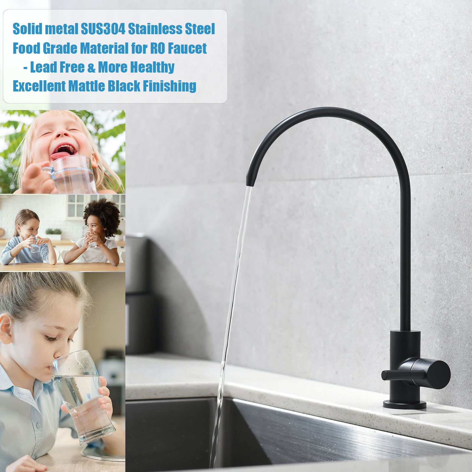 A601 SUS304 Edelstahl-Filterhahn – Einweg-Trinkwasserhahn (Mattschwarz)