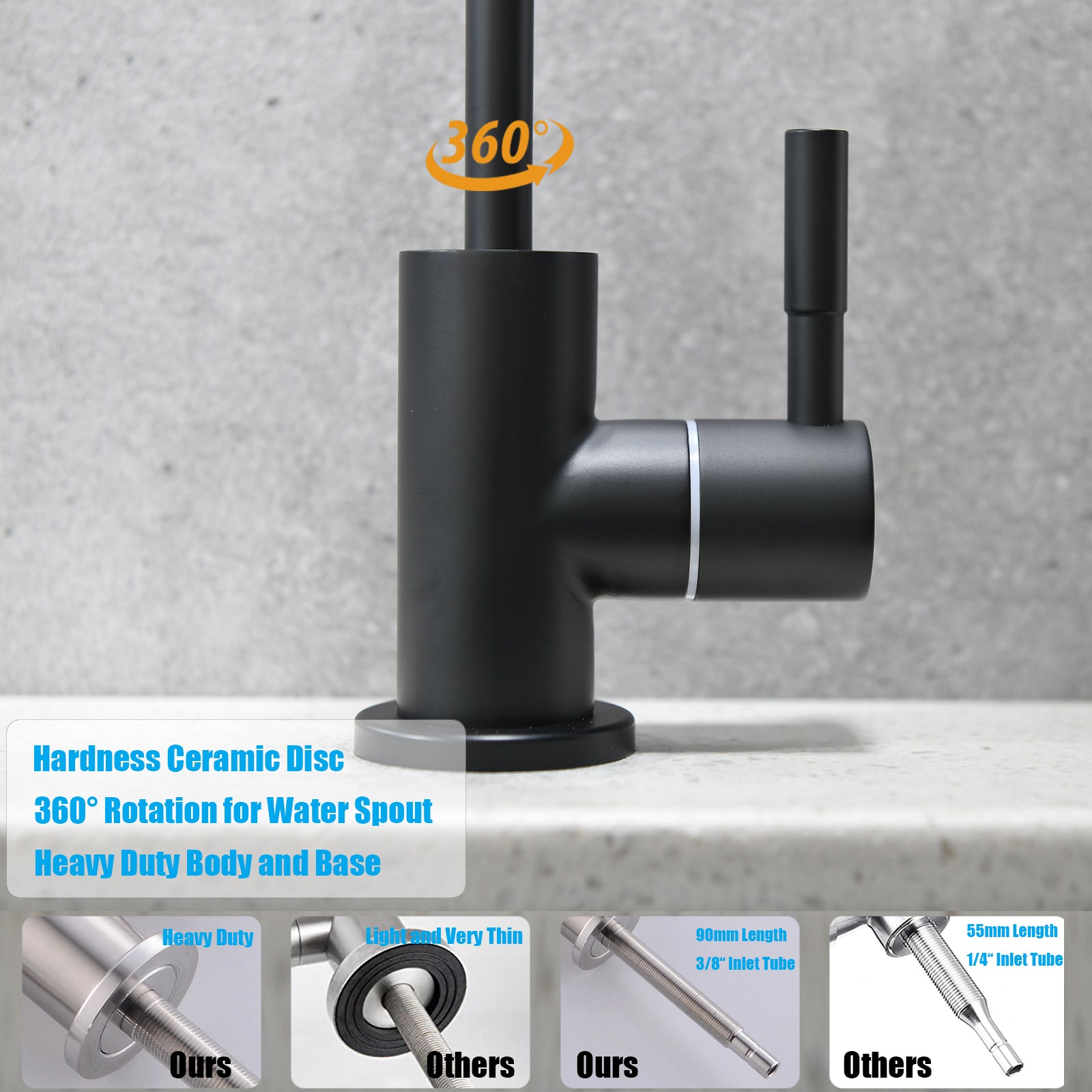 - 360-Grad-Schwenkauslauf, 100 % Test vor Verlassen des Werks, kein Auslaufen.