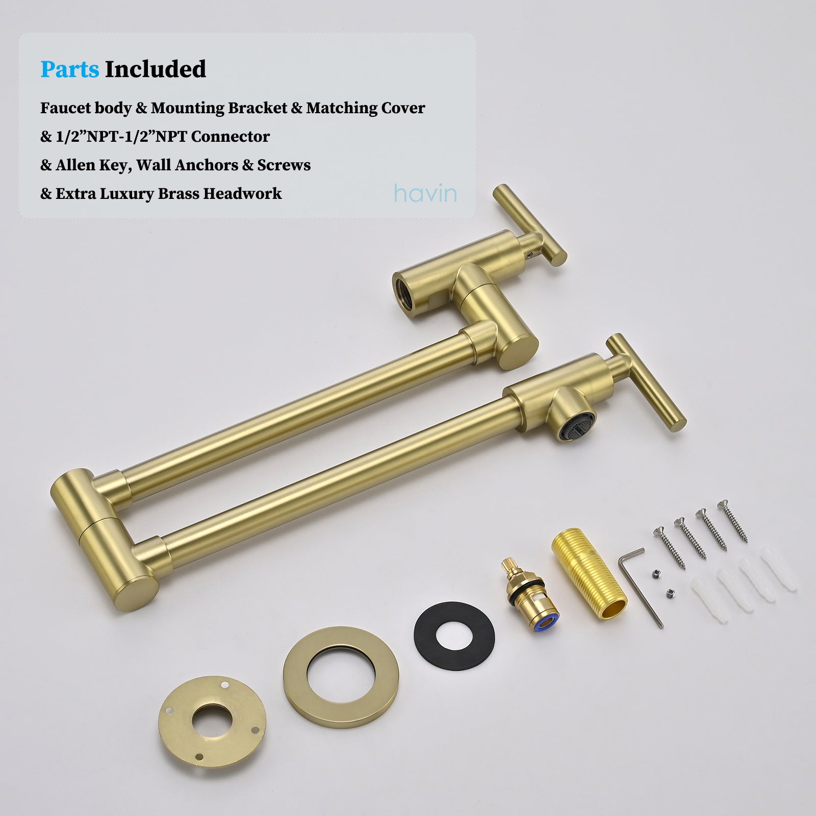 Havin A202 Pot filler faucet wall mount, Upside Down Style, Brushed Gold